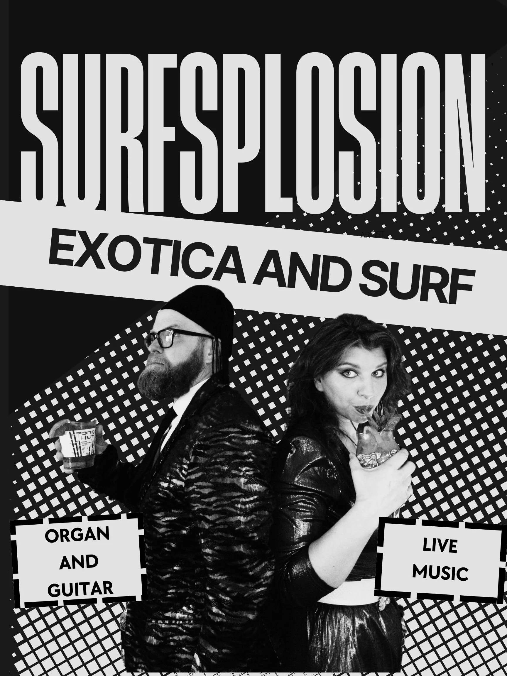 Southern California’s Premier Tiki Lounge ArtistsSurfsplosion is a live exotica surf duo featuring organ, surf guitar, and tiki rhythms—perfect for tiki bars, pool parties, resorts, and tropical events
